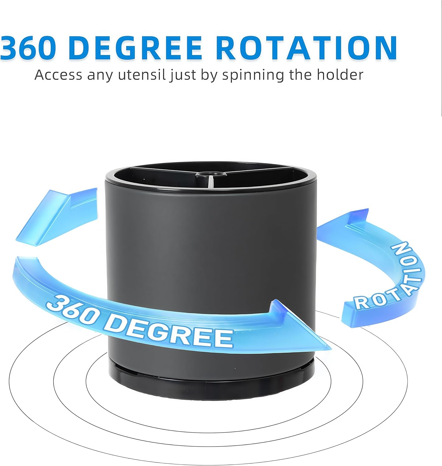 - 360° Rotating Utensil Holder: The 360° utensil caddy with rotating design makes it silverware organizer are easy to use and also a great stress relieving companion in the kitchen.The base of the utensil caddy on the kitchen countertop is equipped with 4 non-slip rubber pieces to secure utensils and prevent scratching the kitchen surface. It provides a simple and efficient storage solution for all your kitchen utensils.
