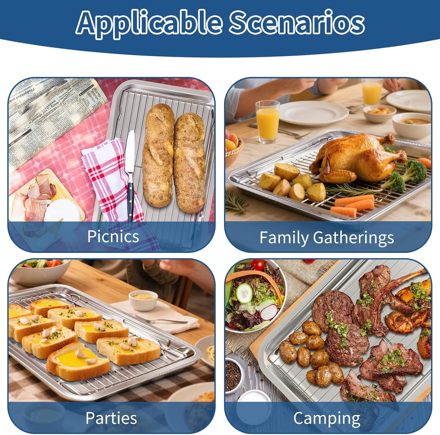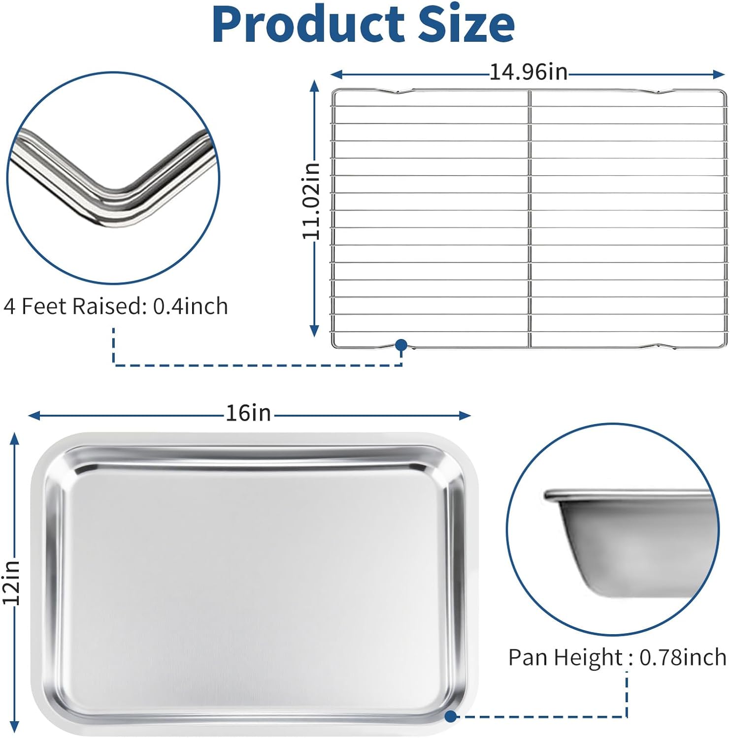 - 【Durable Stainless Steel】Crafted from food-grade stainless steel, this 16×12×1 inch set resists rust and warping, even after repeated use in ovens up to 500°F. Thickened base ensures even heat distribution—no more burnt cookie edges or undercooked meats. Built to last few years, looking like new with every use.
