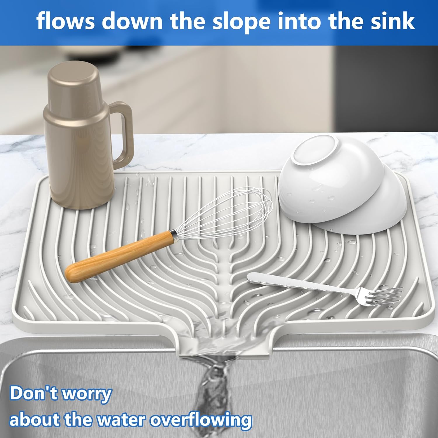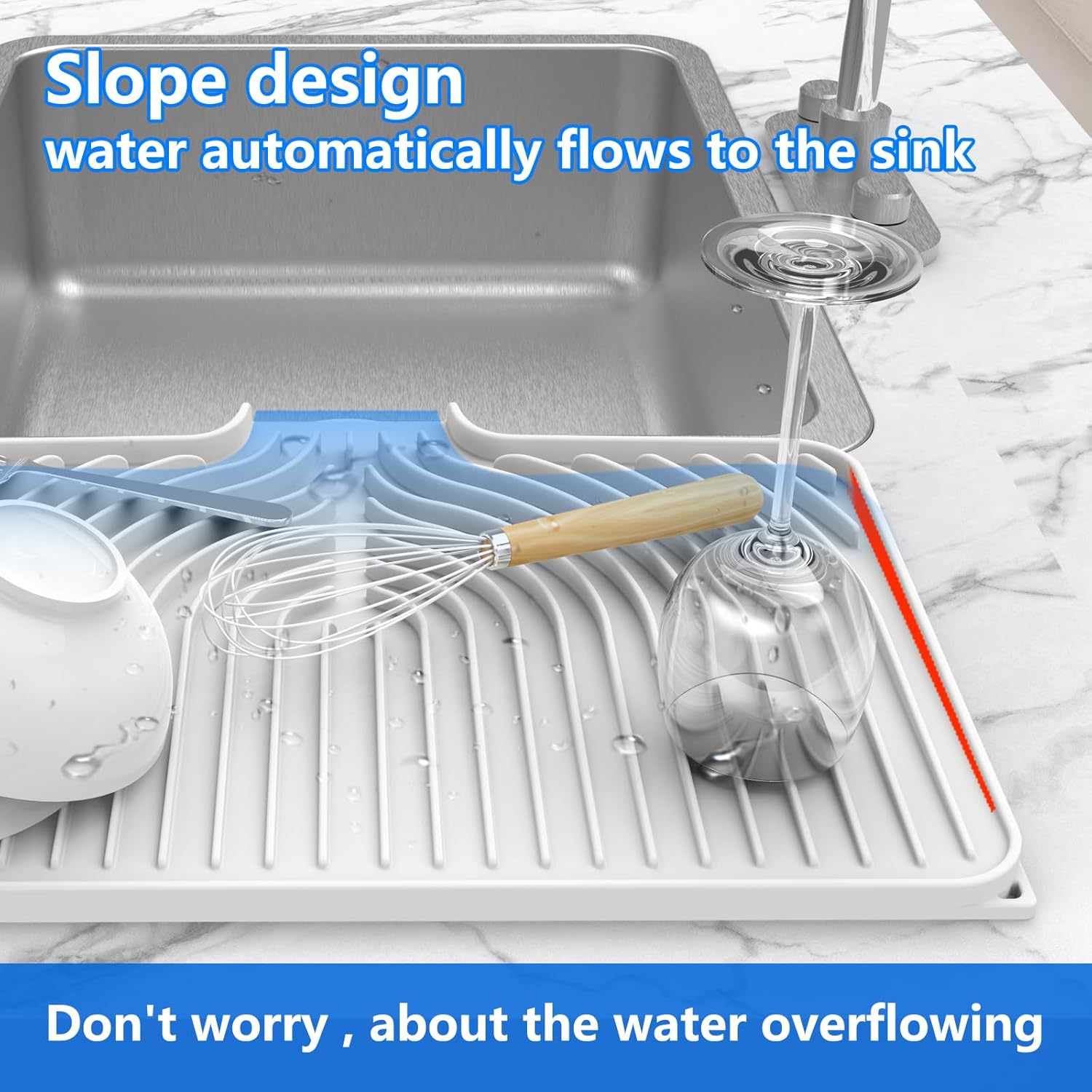 Dish Drying Matt for Kitchen Counter,18"×12"Silicone Dry Rack Mat with Built in Drain, Kitchen Dry Mats for Dishes Drying Pad for Counter(White)