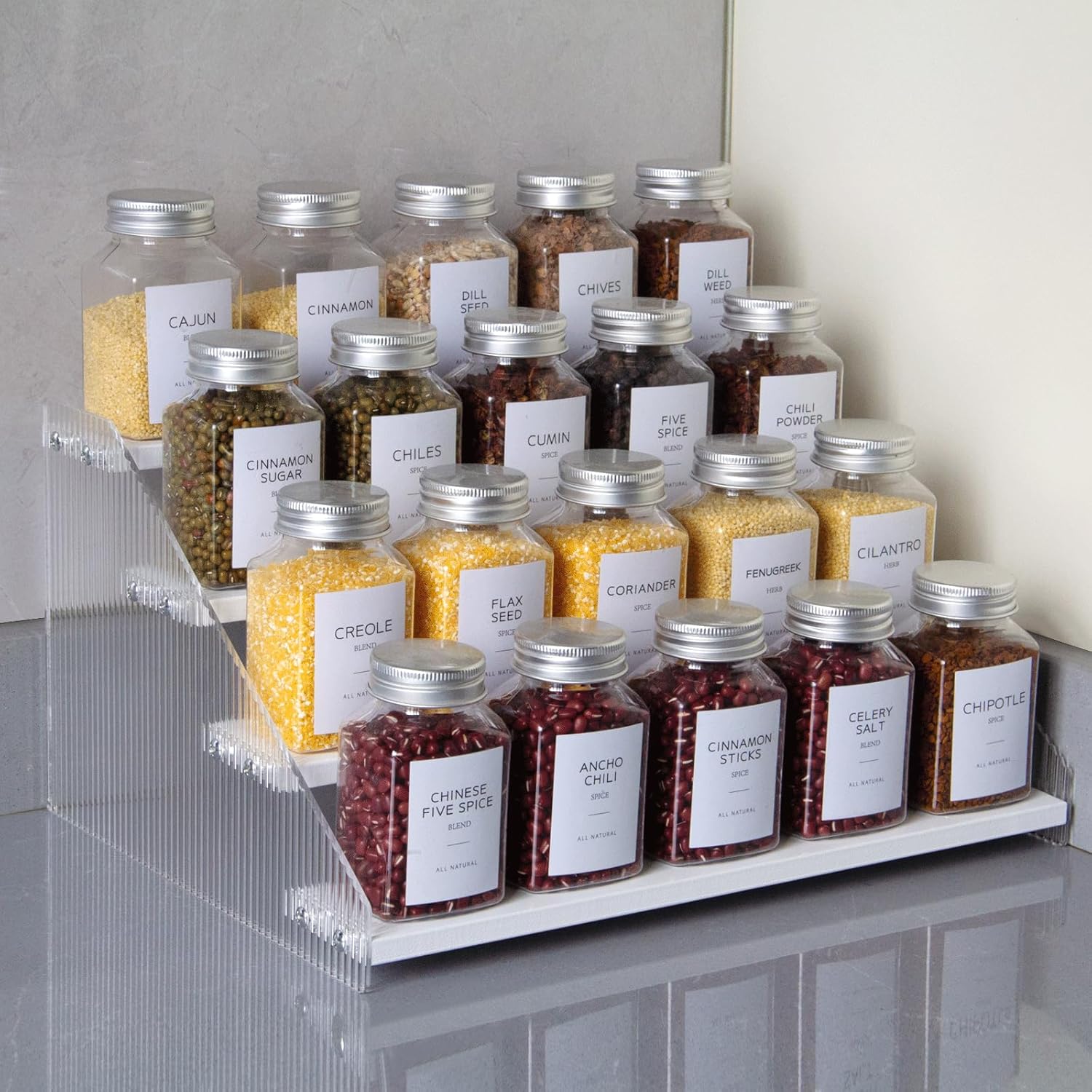 - Elegant & Sturdy: Risers display stands constructed from high-quality pine wood and corrugated acrylic, making it both aesthetically pleasing and fashionable, as well as durable and resistant to deformation, the spice shelf is a beautiful and robust addition to any space