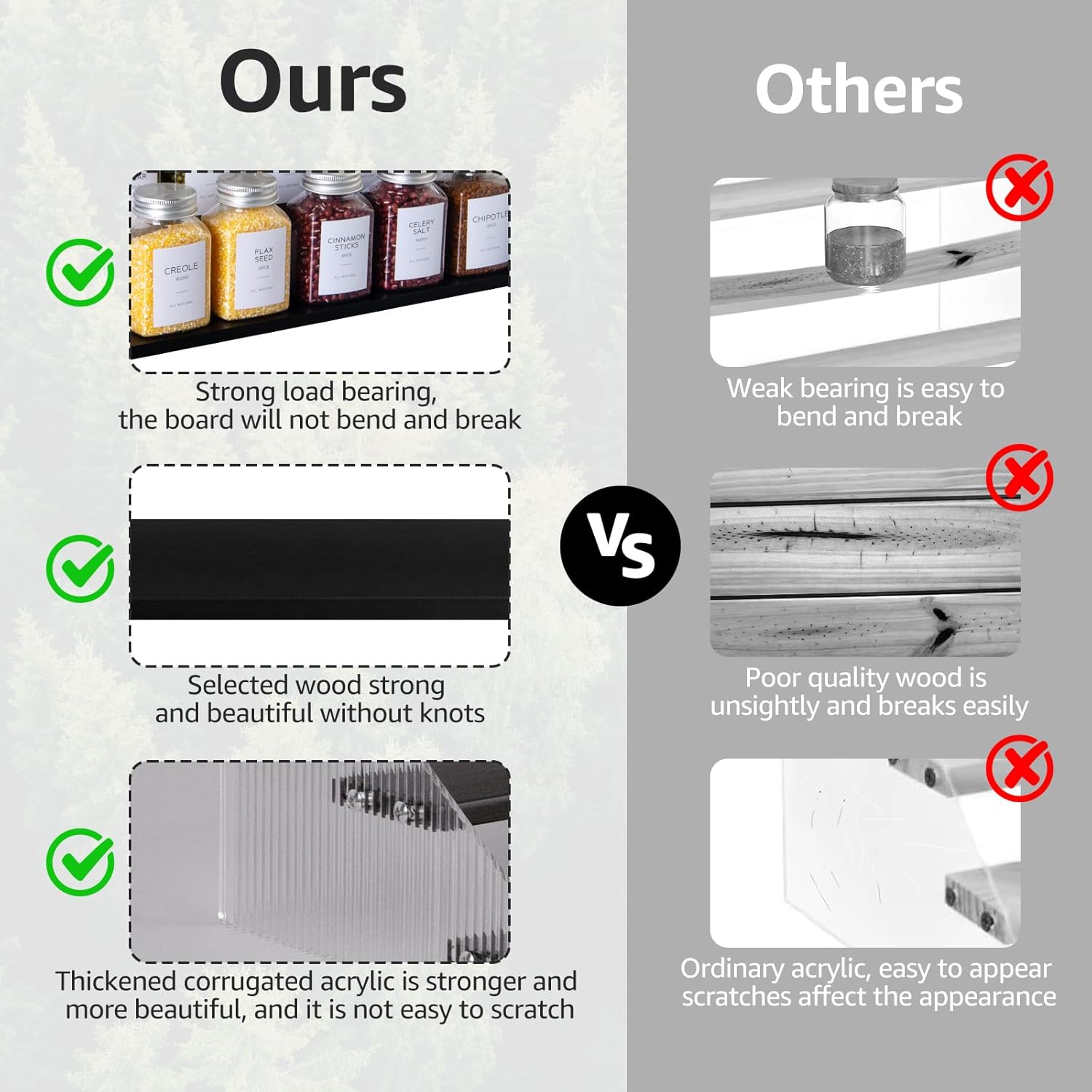 - Elegant & Sturdy: Risers display stands constructed from high-quality pine wood and corrugated acrylic, making it both aesthetically pleasing and fashionable, as well as durable and resistant to deformation, the spice shelf is a beautiful and robust addition to any space