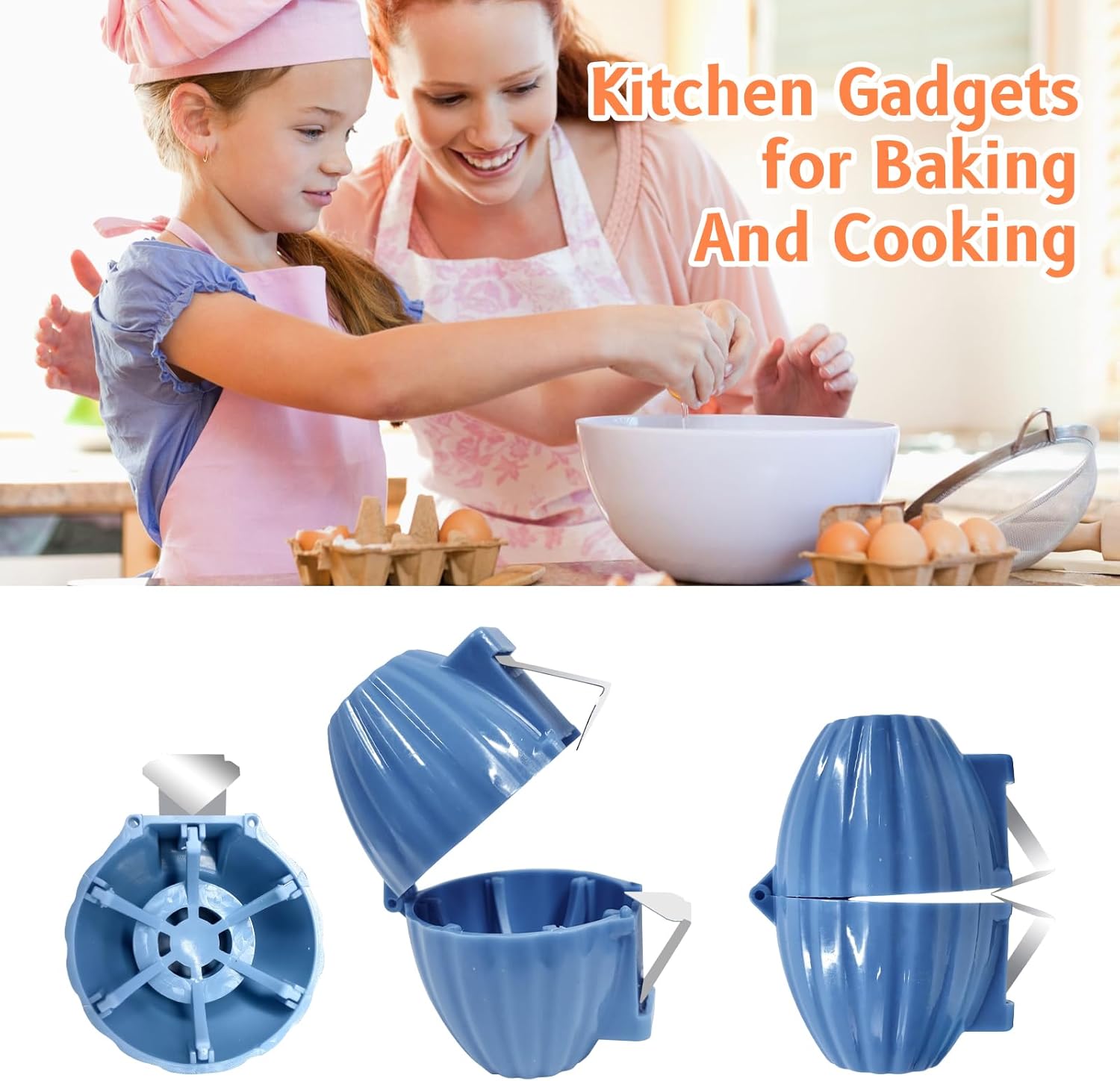 2pcs Egg Shell Opener for Hard Boiled Eggs Stainless Steel Egg Peeler Tool Easy Egg Cracker Tool for Raw Eggs, Egg Slicer for Raw Eggs Kitchen Gadgets for Baking(Blue)