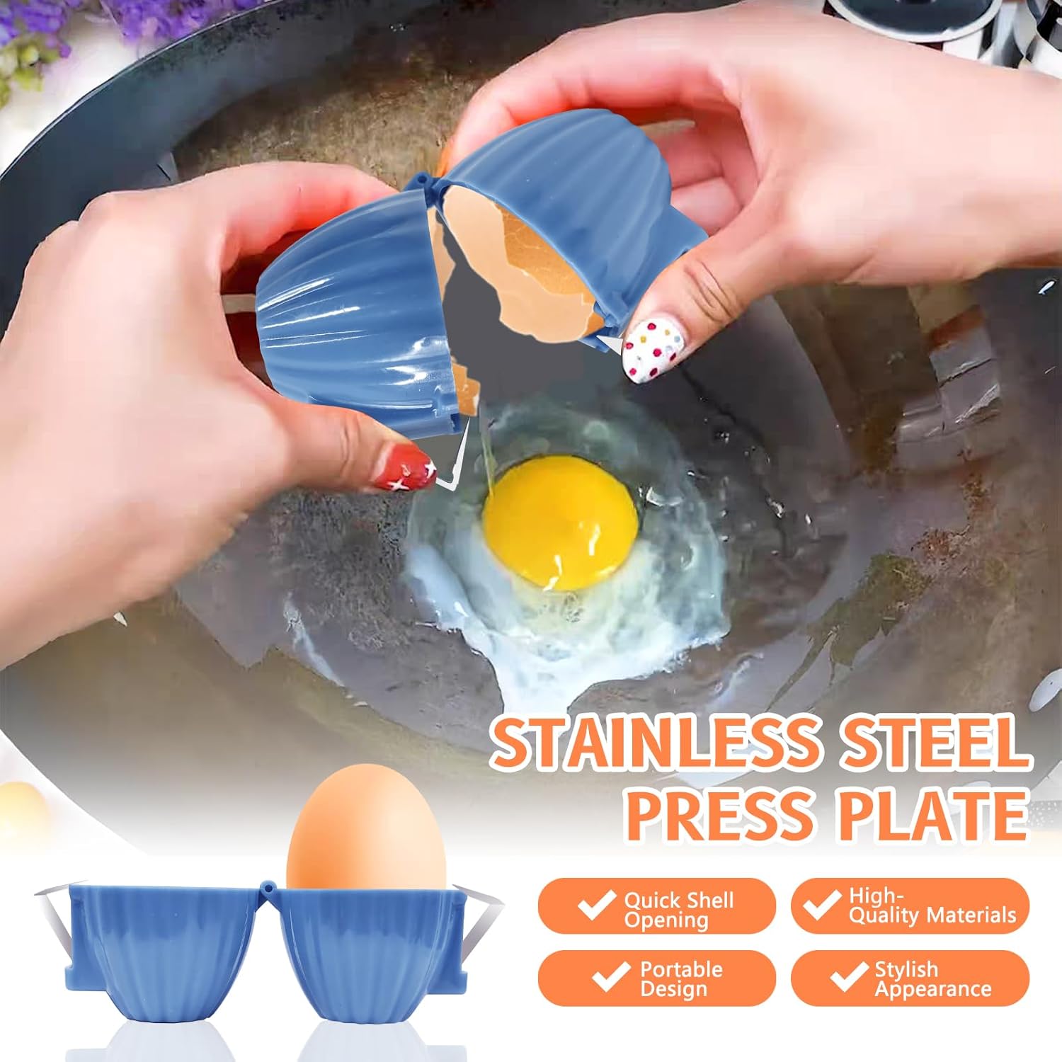 - 【Crack Eggs Effortlessly】:Place the egg in the cube, press the metal clamp to crack the shell, then invert and open the cube to release the egg.No more messy fingers or broken yolks.